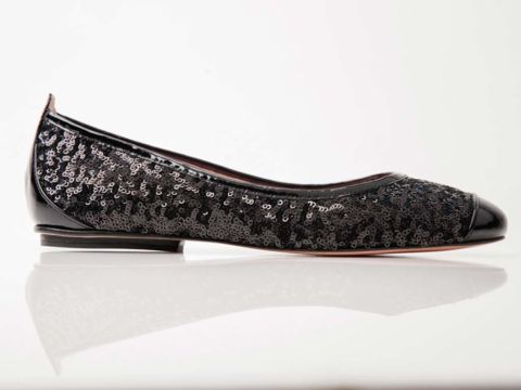 Las bodas son una celebración del amor y esto suele estar acompañado de música muy bailable. Cambia tus taconazos por un zapato plano sin perder estilo. Estas bailarinas de lentejuelas negras son de Brite Shoes y cuestan 96 €.